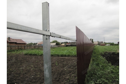 Труба 40×20 используется в качестве лаги при монтаже модульных ограждений Colority Zinc. Крепится к столбу посредством Х-кронштейна.