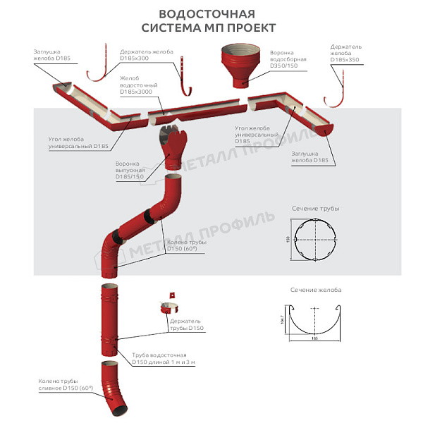 - Сталь в основе не позволяет Заглушка желоба МЕТАЛЛ ПРОФИЛЬ ПРОЕКТ D185 Цинк ржаветь.